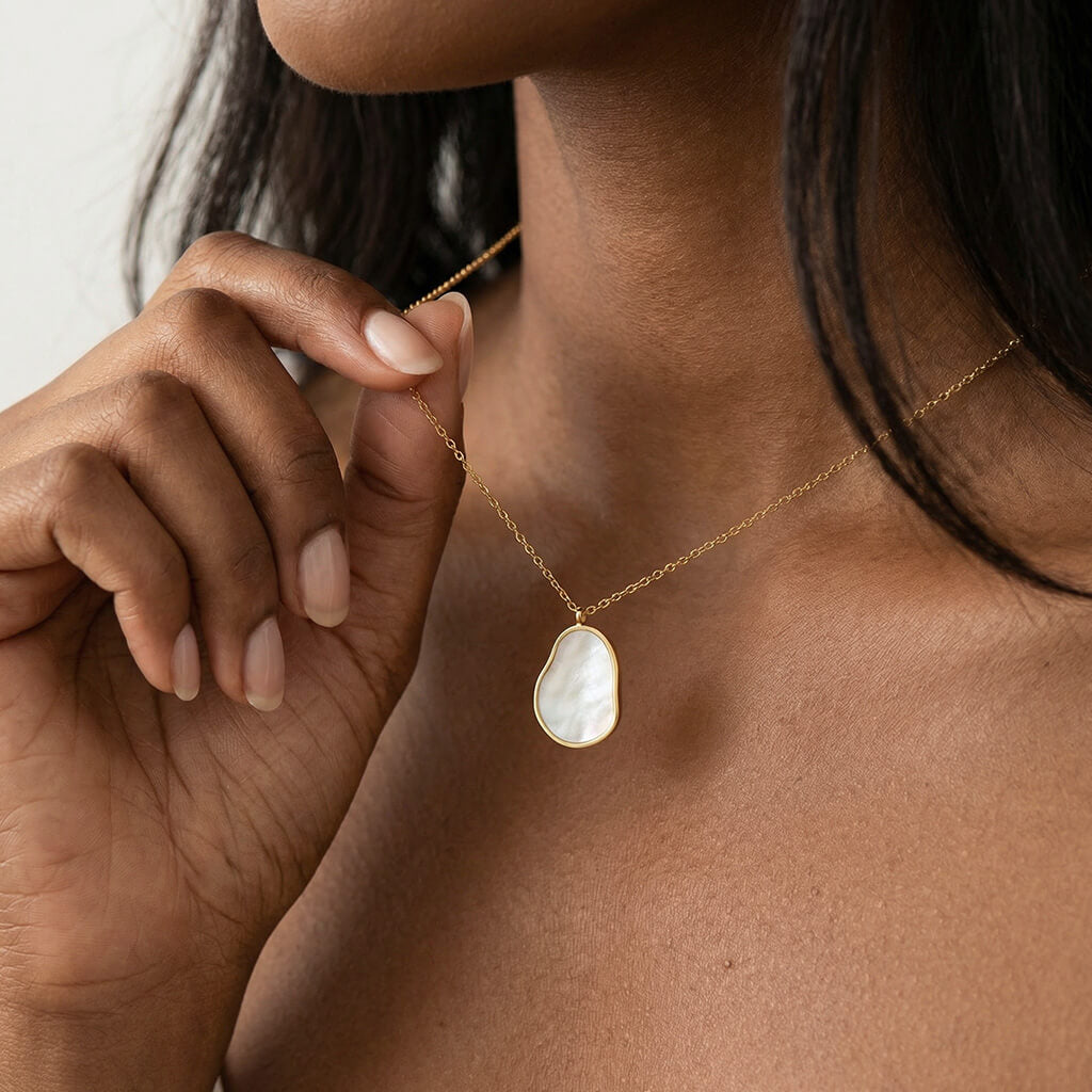 Organic. Minimalist. Striking. The Lyra Irregular Pendant Necklace balances fluid form with polished presence.
