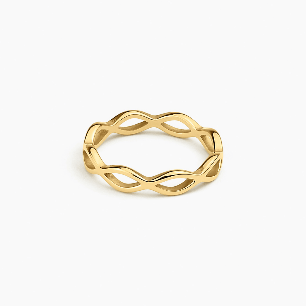 Delicate. Woven. Enduring. The Interwoven Eternity Ring features a delicate, twisted design, symbolising unity and timeless elegance. A perfect accessory to wear alone or stacked for a layered look.