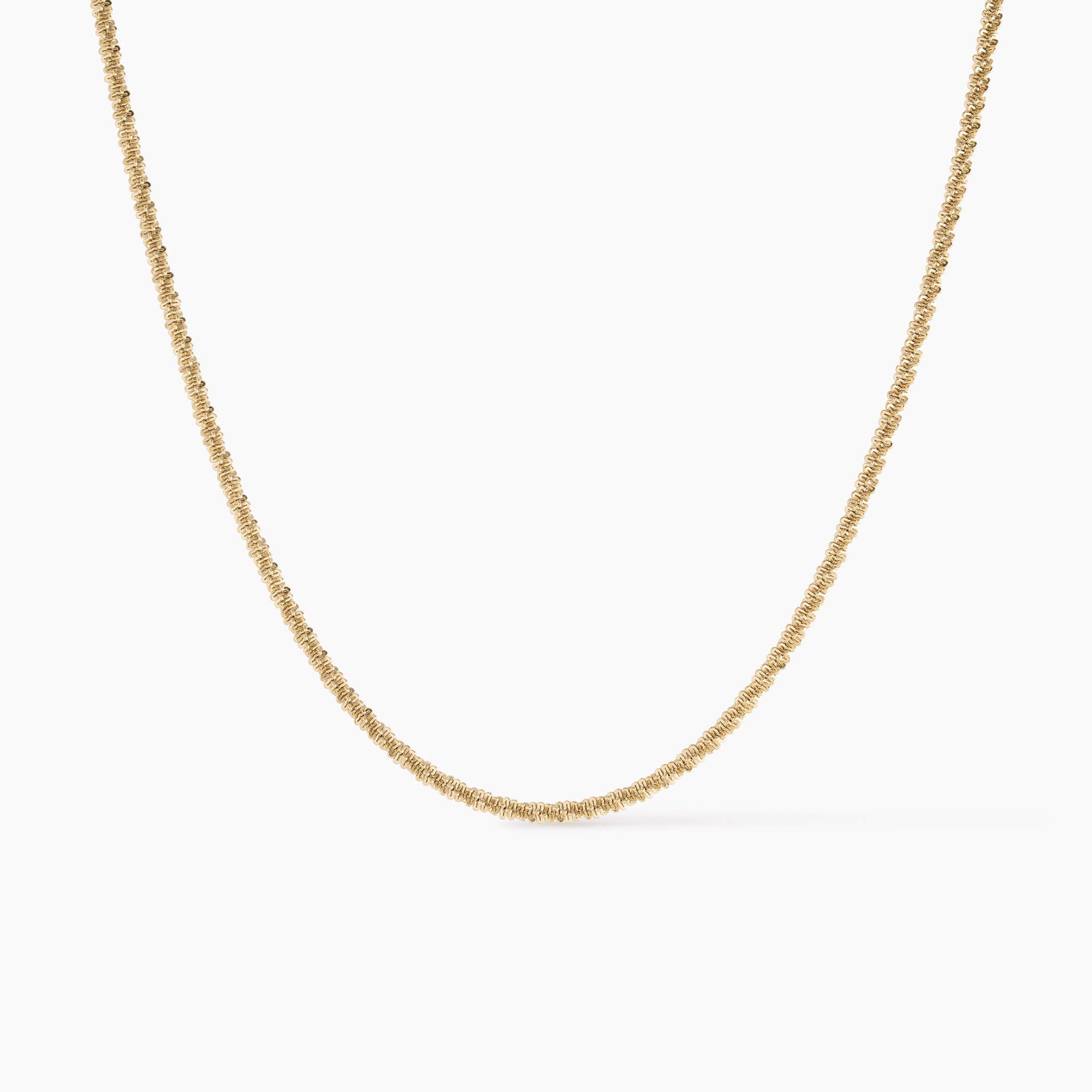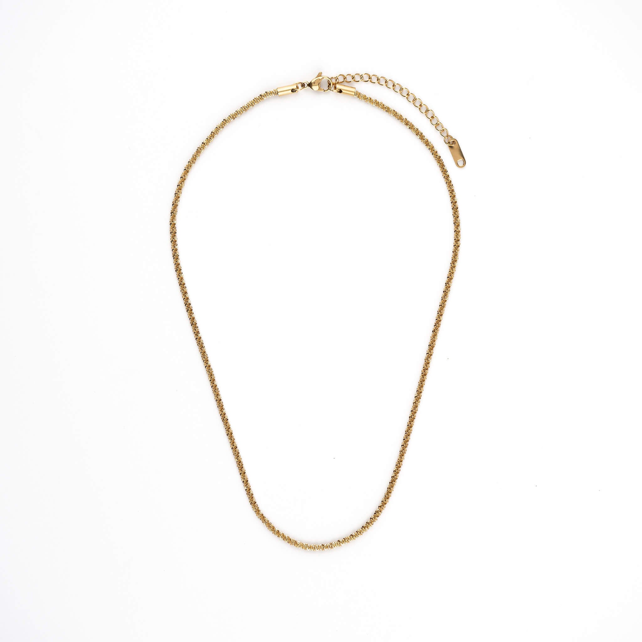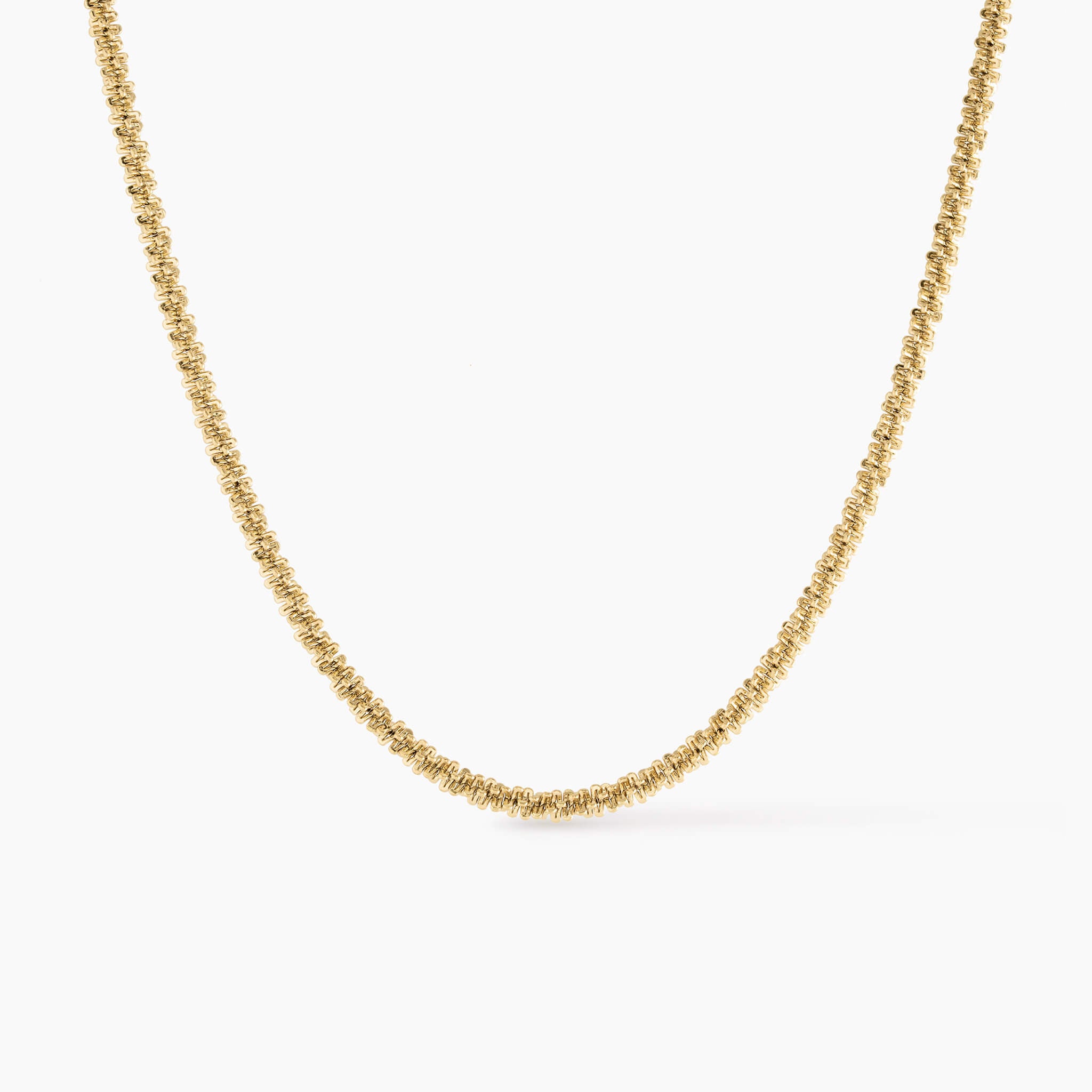 Distinctive. Elegant. Enduring. The Elara Rope Chain Necklace brings braided texture into balance,  subtle yet defined. It sits comfortably at 40 cm with a 5 cm extender, designed in either 2.4mm or 4mm width and a lobster clasp. Flowing effortlessly whether worn alone or layered.