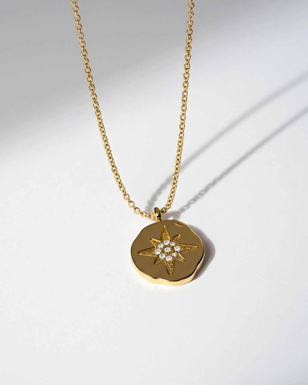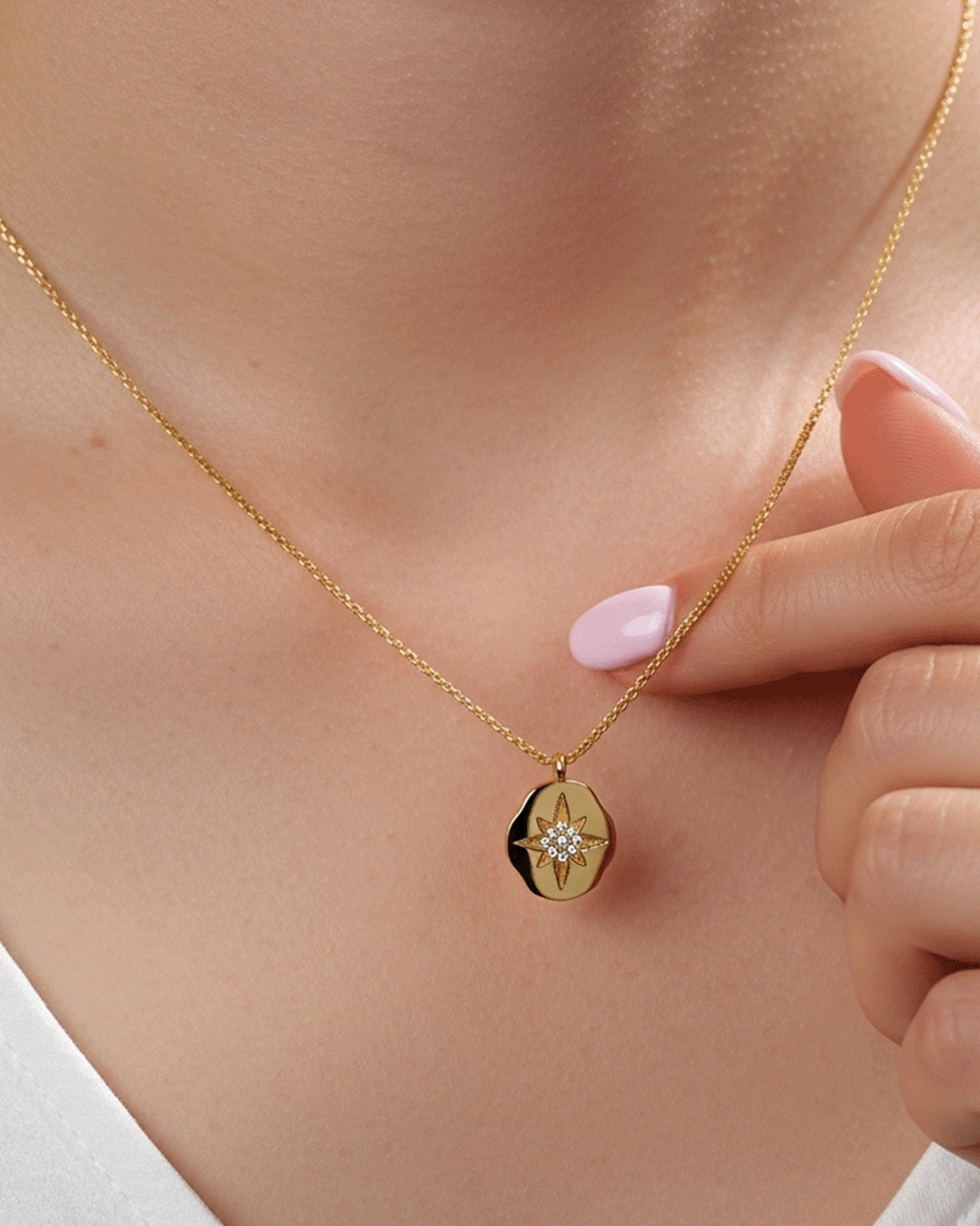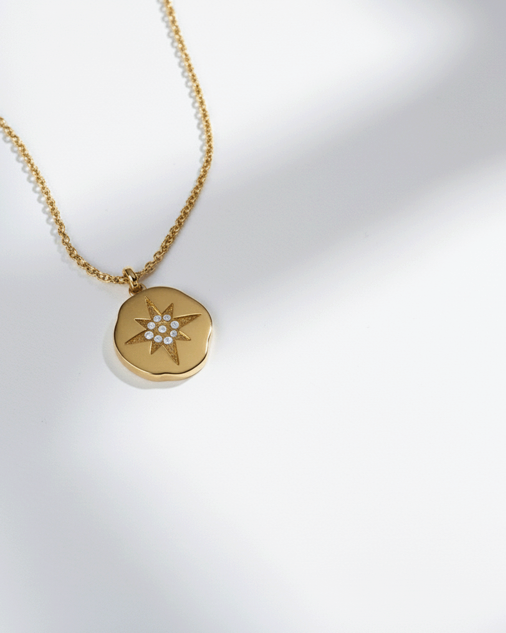 Measured at 10mm across and weighing 5.5g, it rests at the heart on a 40cm chain with 8 cm extension. Light-catching, steady, and personal, it is made to be worn every day as your guiding star, imperfectly perfect - just like you.