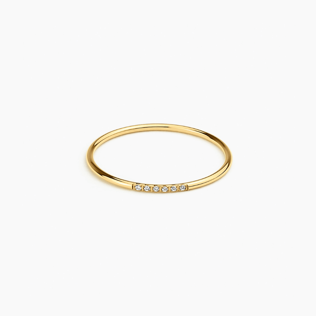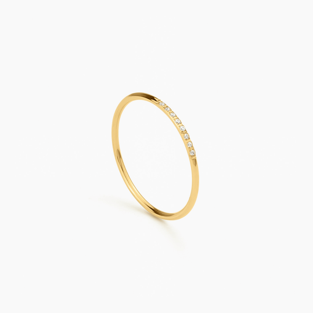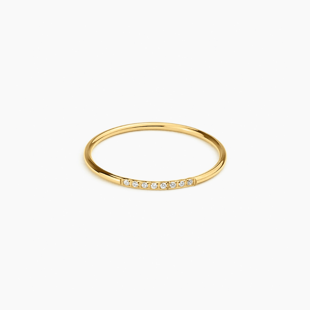 Delicate. Radiant. Enduring. The Halo Band traces a fine line of light across the finger - a row of six or eight precision-set stones that glow with quiet confidence. Designed to be effortlessly stackable, it layers beautifully with other Fallen Season bands or stands alone as a subtle symbol of light and memory. A refined piece that balances simplicity with sentiment, made to linger in every season.